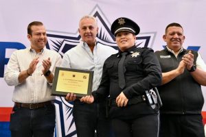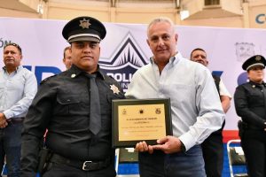 El alcalde Román Alberto Cepeda González entregó reconocimientos a elementos de la Policía Municipal, por diferentes actos sobresalientes y de apoyo a la ciudadanía, como asistencia a adultos mayores, detenciones destacadas y atención de emergencias.